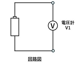 以下の回路をブレッドボード上につくります。(電圧計V1と乾電池を直列に配線する)