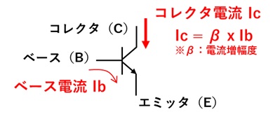 (参考:電流増幅率はトランジスタ仕様書ではhFEと記載されています)