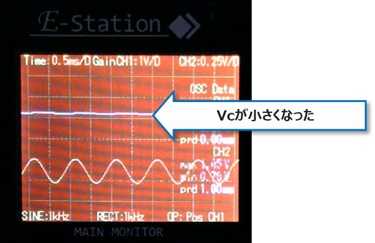 また、コレクタ電圧Vcの正弦波も少し大きくなっていることが分かりました。